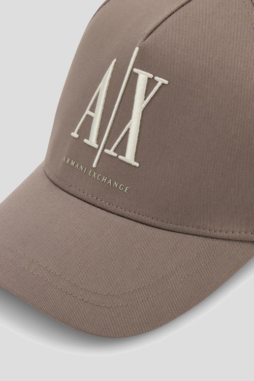 Детали: Мужская бежевая хлопковая кепка от Armani Exchange (Армани Эксчендж). Нашивка с логотипом, закругленный козырек, регулируемый диаметр