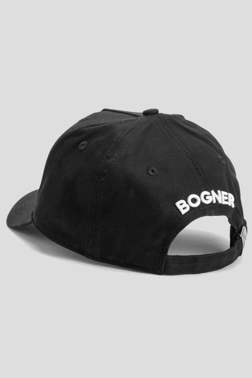 Детали: Мужская черная кепка из хлопка от Bogner (Богнер). Закругленный козырек, регулируемый диаметр, металлическая застежка, перфорация, декорировано вышивкой спереди, логотип бренда