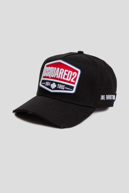 Детали: Мужская черная хлопковая кепка от Dsquared2 (Дискваред). Нашивка с логотипом, закругленный козырек с потертостями, регулируемый диаметр
