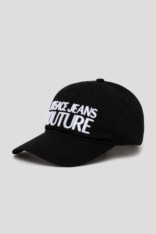 Мужская черная кепка из хлопка от Versace Jeans Couture (Версаче Джинс Кутюр).Закругленный козырек, регулируемый размер, вышитый логотип спереди