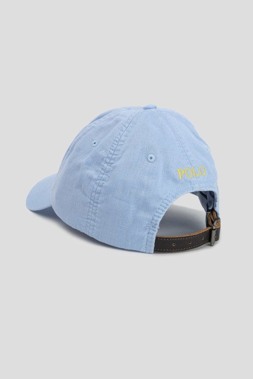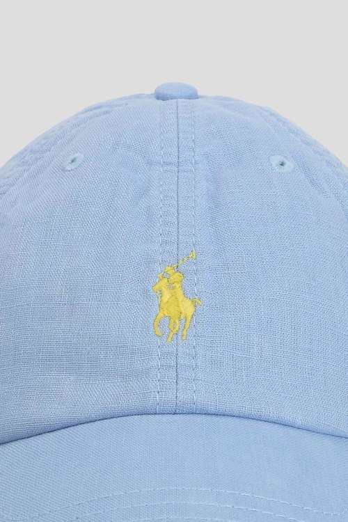 Детали: Мужская голубая льняная кепка от Polo Ralph Lauren (Поло Ральф Лорен). Вышитый логотип, закругленный козырек, регулируемый диаметр