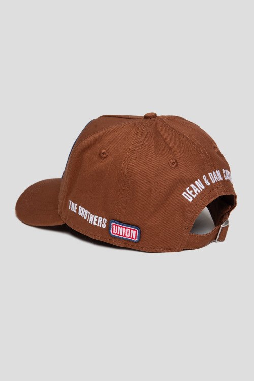 Детали: Мужская коричневая кепка из хлопка от Dsquared2 (Дискваред). Закругленный козырек, регулируемый размер, спереди яркий патч-лого, вышита фирменная надпись