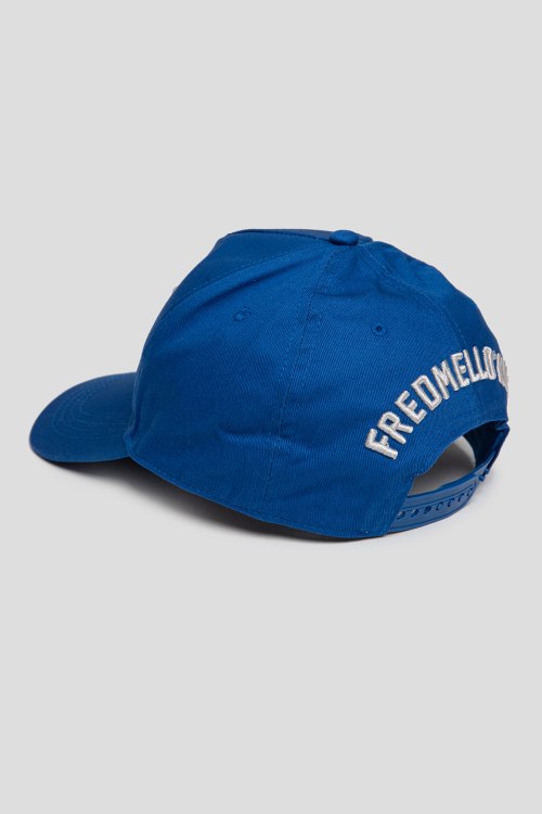 Детали: Мужская синяя кепка из хлопка от Fred Mello (Фред Мелло). Закругленный козырек, регулируемый размер, вышитый логотип бренда