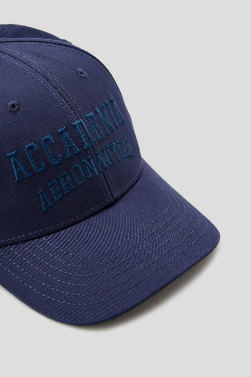 Детали: Мужская темно-синяя кепка Accademia Aeronautica из хлопка от Aeronautica Militare (Аэронавтика Милитари). Закругленный козырек, регулируемый размер, вышитый логотип бренда, перфорация