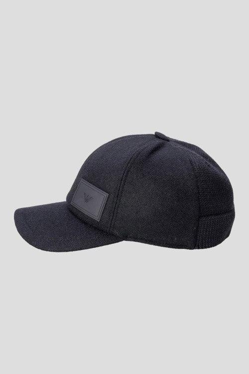 Детали: Мужская темно-синяя кепка из шерстяного микса от Emporio Armani (Эмпорио Армани). Закругленный козырек, комбинированный дизайн, патч-лого