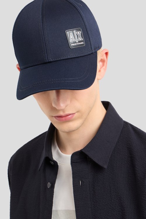 Детали: Мужская темно-синяя хлопковая кепка от Armani Exchange (Армани Эксчендж). Нашивка с логотипом, закругленный козырек, регулируемый диаметр