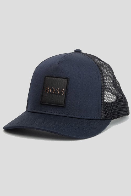 Детали: Мужская темно-синяя кепка от Hugo Boss (Хуго Босс). Нашивка с логотипом, сетчатая вставка, закругленный козырек, регулируемый диаметр