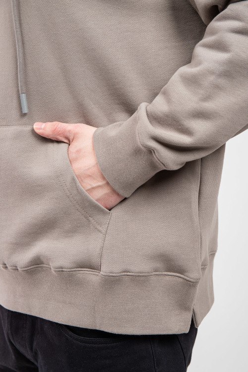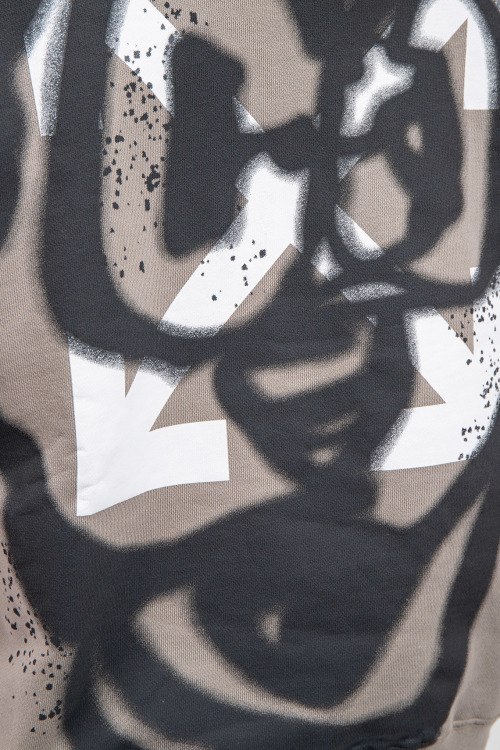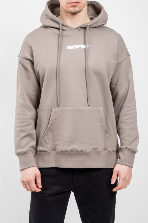 Мужской бежевый худи из хлопка от Off-White (Офф-Вайт). Вшитый капюшон с кулиской, графический принт на спине, логотип бренда на груди, карман-кенгуру, трикотажная резинка на манжетах и по низу изделия.