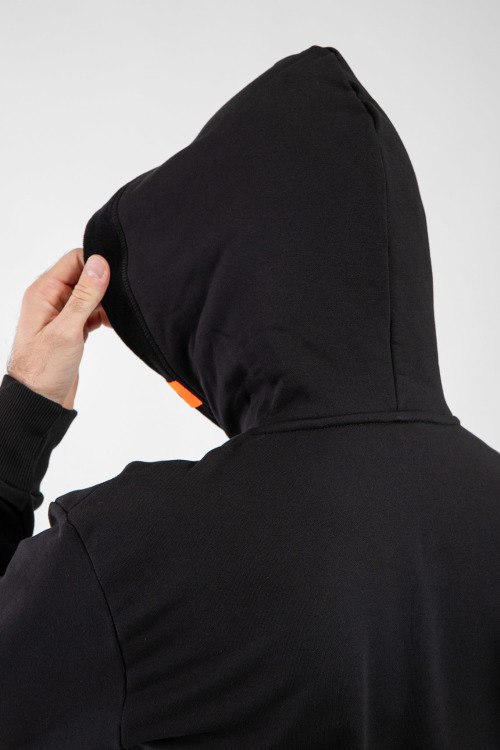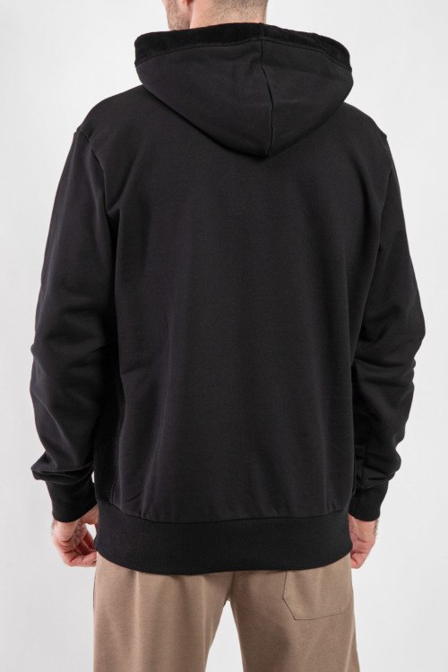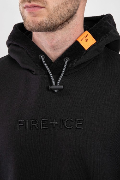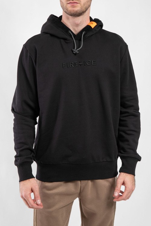 Детали: Мужской черный худи Delvin из хлопка от Bogner Fire+Ice (Богнер Фаер+Айс). Утепленная модель флисом, вшитый капюшон с кулиской, вышитый логотип бренда на груди, патч-лого, манжеты и низ изделия в рубчик