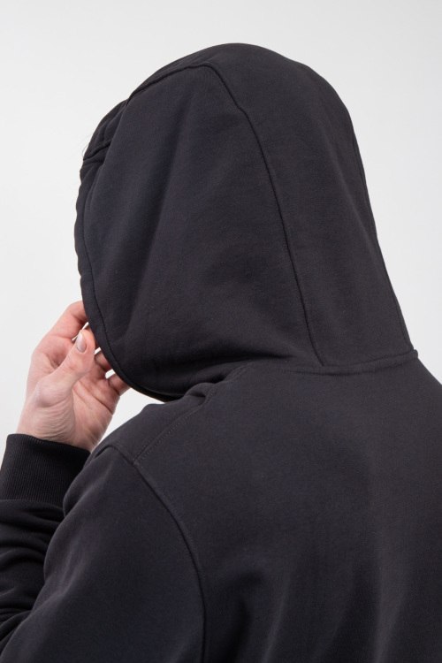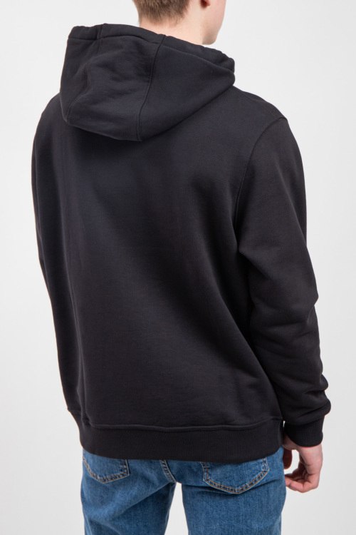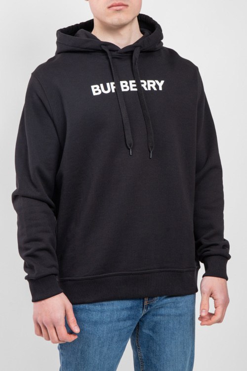 Мужской черный худи из хлопка от Burberry (Бёрберри). Классическая длина, вшитый капюшон, длинные рукава, трикотажная резинка на манжетах и по низу изделия, брендированный принт на груди.