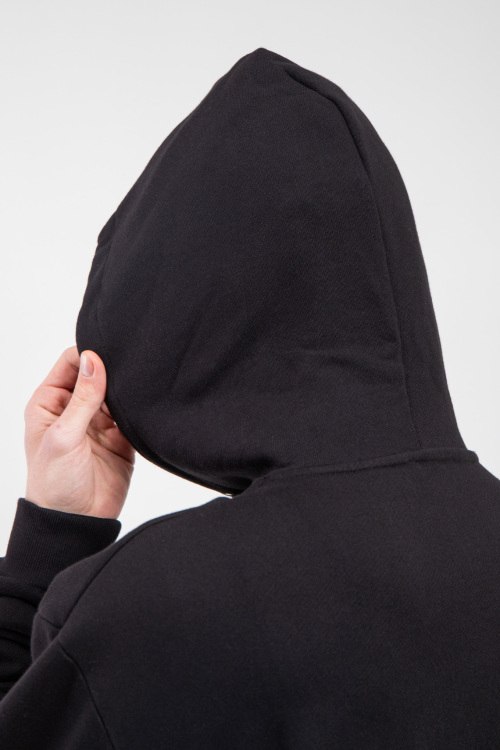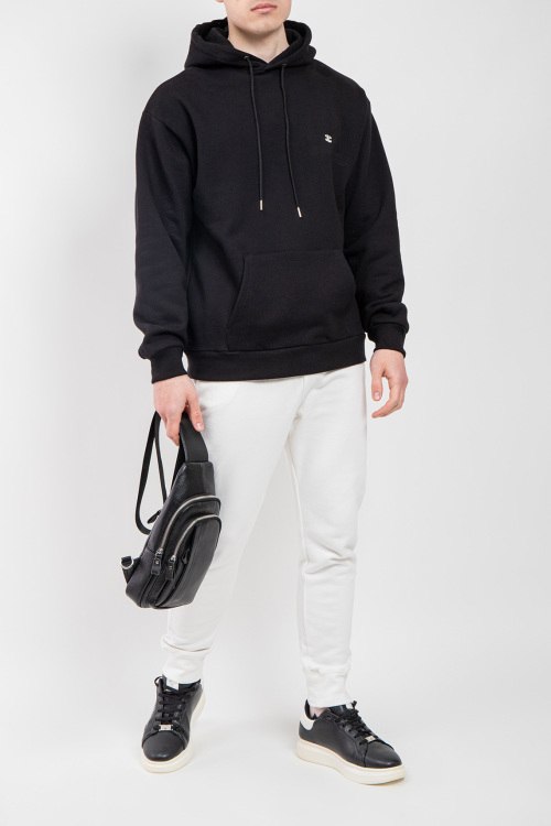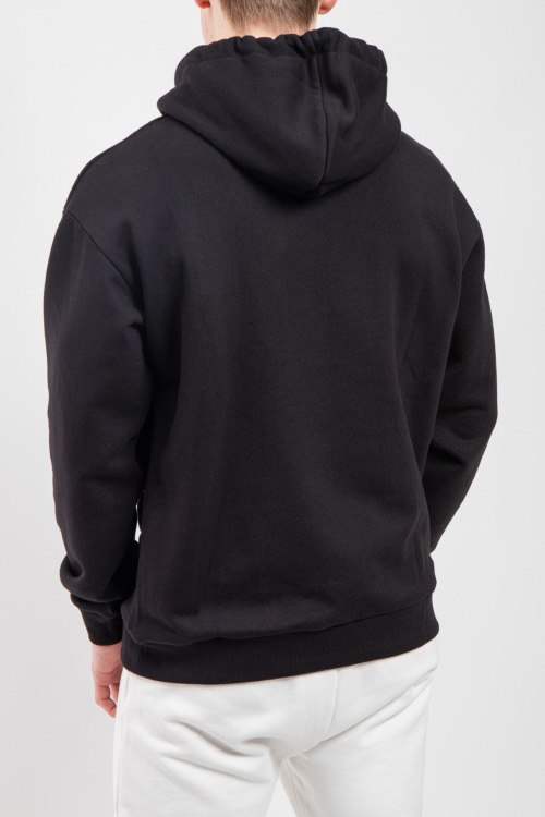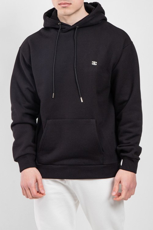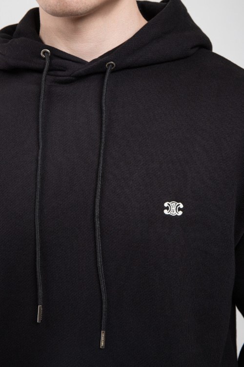 Мужской черный худи из хлопка от Celine (Селин). Классическая длина, вшитый капюшон, длинные рукава, трикотажная резинка на манжетах и по низу изделия, вышитый логотип на груди, карман-кенгуру.