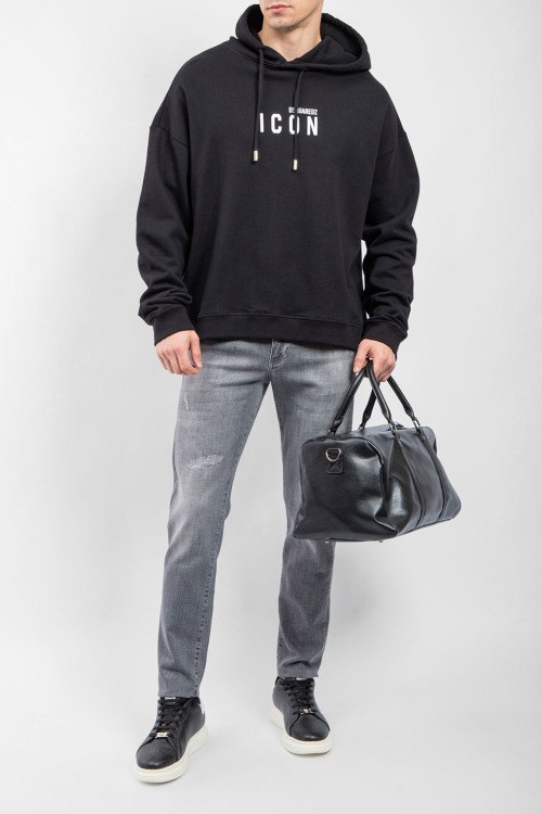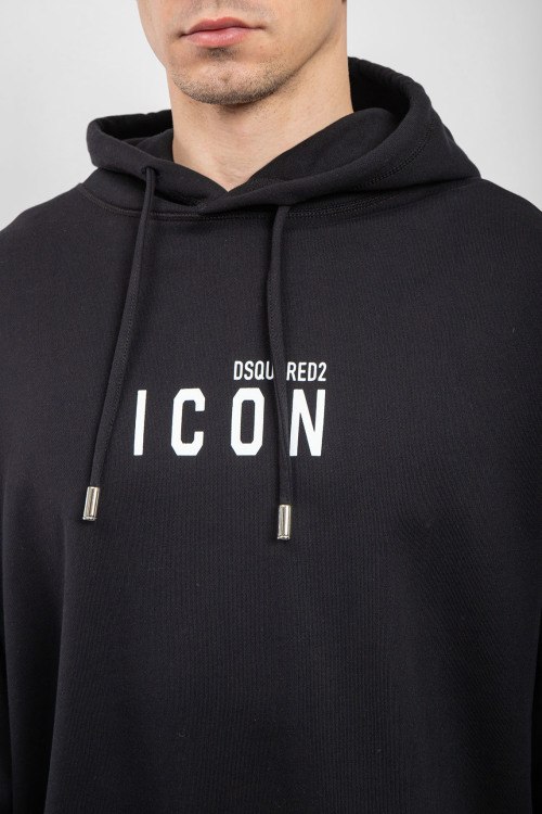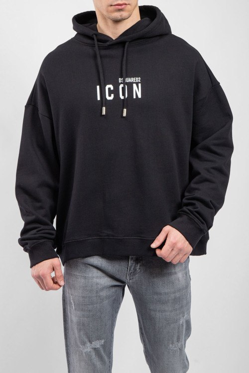 Мужской черный хлопковый худи ICON от Dsquared2 (Дискваред). Капюшон на завязках, логотип на груди, классическая длина, трикотажные манжеты и нижний край.