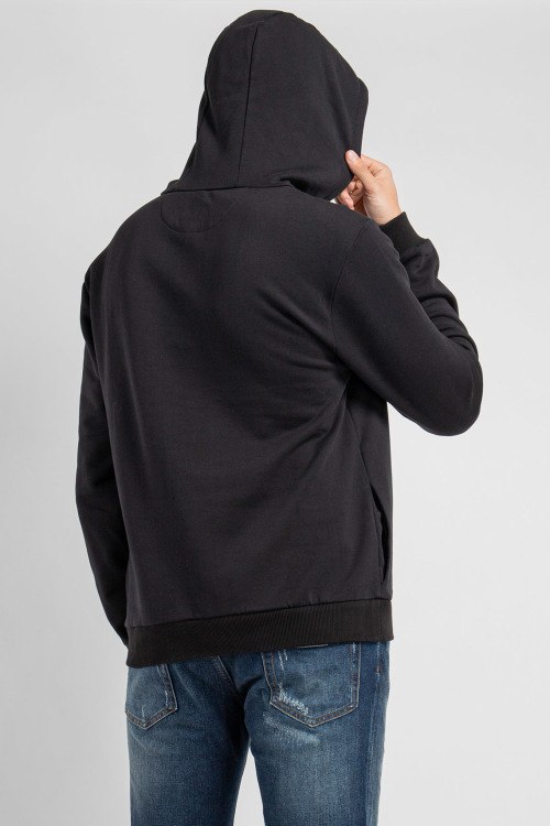 Детали: Мужской черный худи из хлопка от Fendi (Фенди). Классическая длина, вшитый капюшон с кулиской, трикотажная резинка на манжетах и по низу изделия, декор: спереди кожаная вставка в виде глаз.