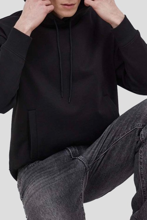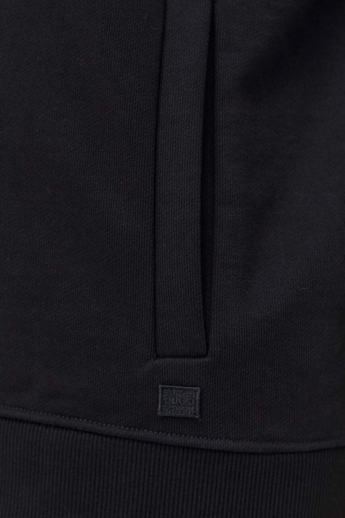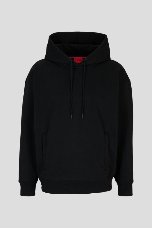 Детали: Мужской черный худи Dayfun из хлопка от Hugo by Hugo Boss (Хуго бай Хуго Босс). Классическая длина, вшитый капюшон, длинные рукава, трикотажная резинка на манжетах и по низу изделия, прорезные карманы, патч-лого