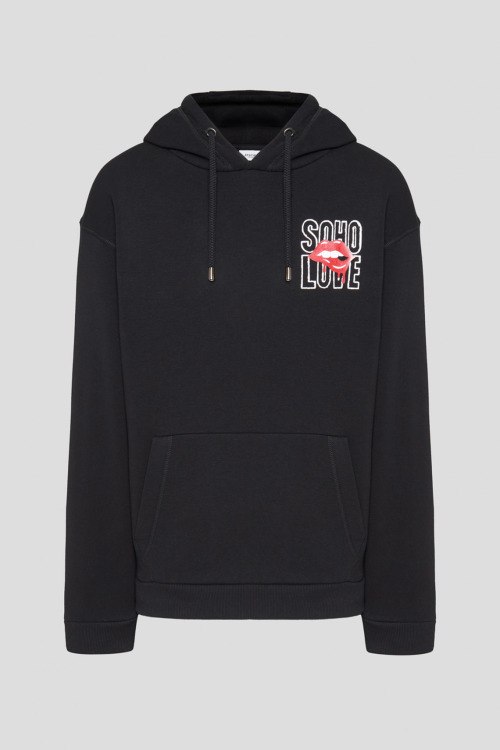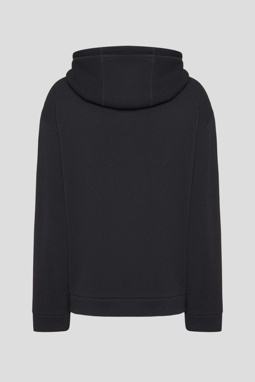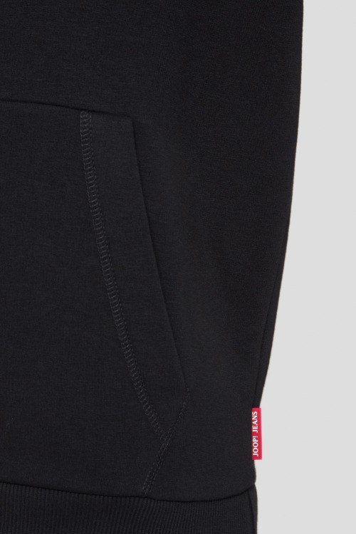 Детали: Мужской черный хлопковый худи от Joop! (Йооп!). Капюшон на завязках, принт на груди, карман-кенгуру, трикотажные манжеты и нижний край. Длина рукава: длинный, для размера M - 62 см, обхват груди: для размера M - 112 см, обхват талии: для размера M - 110 см, длина изделия по среднему шву спинки от горловины: для размера M - 71 см