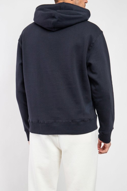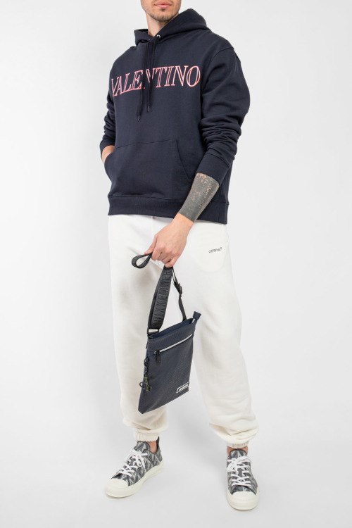 Мужской черный худи из хлопка от Valentino (Валентино). Вшитый капюшон, длинные рукава, трикотажная резинка на манжетах и по низу изделия, принт с логотипом бренда на груди, карман-кенгуру, утепленная модель флисом.