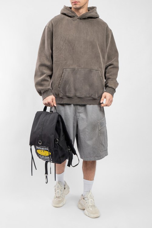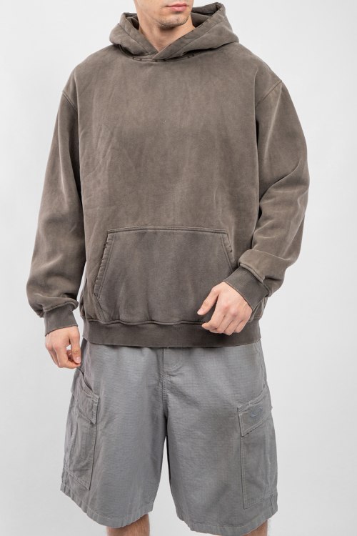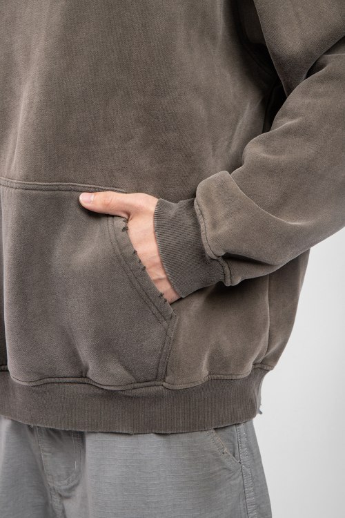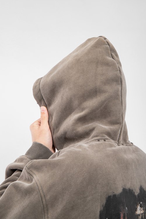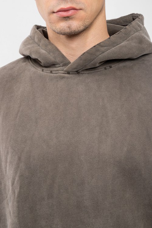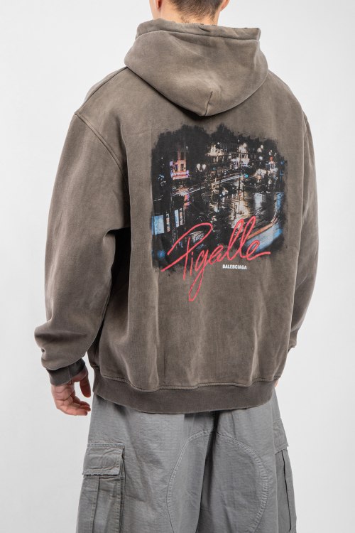 Мужской серый хлопковый худи Pigalle от Balenciaga (Баленсиага). Вшитый капюшон, принт на спине, карман-кенгуру, классическая длина, трикотажные манжеты и нижний край.