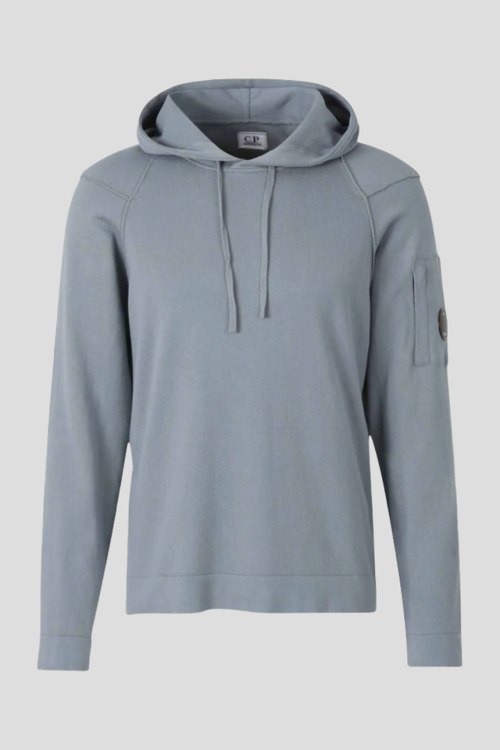 Детали: Мужской светло-серый хлопковый худи от C.P. Company (СиПи Компани). Вшитый капюшон с кулиской, длинные рукава-реглан, патч-лого на рукаве, классическая длина