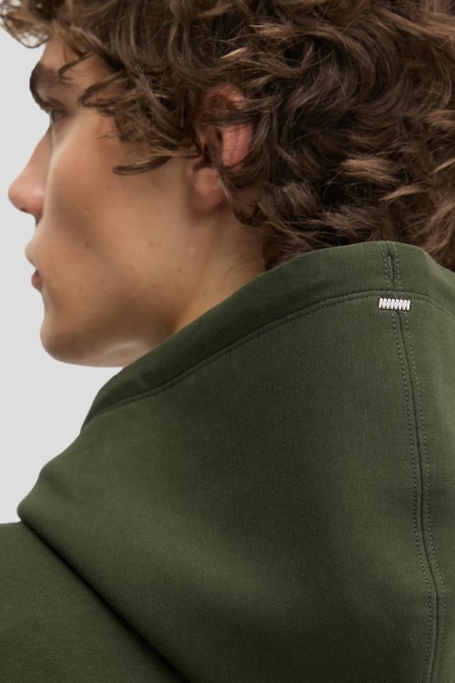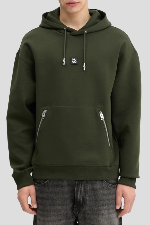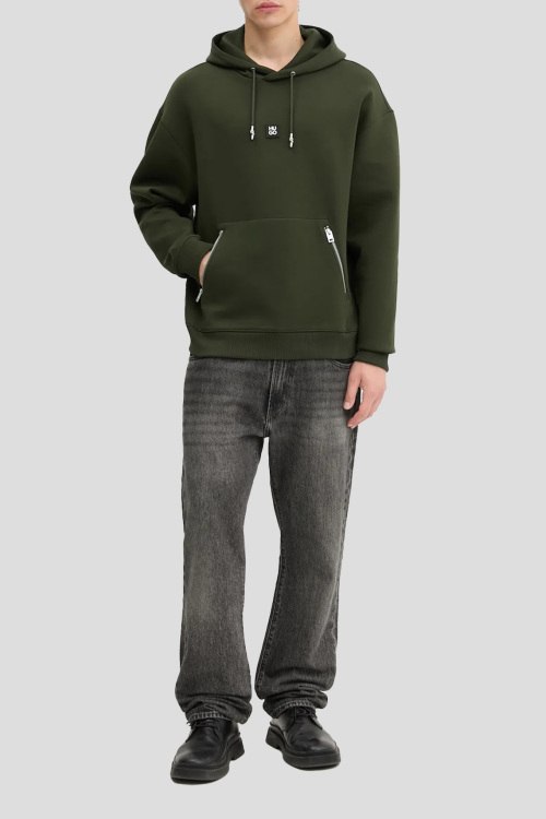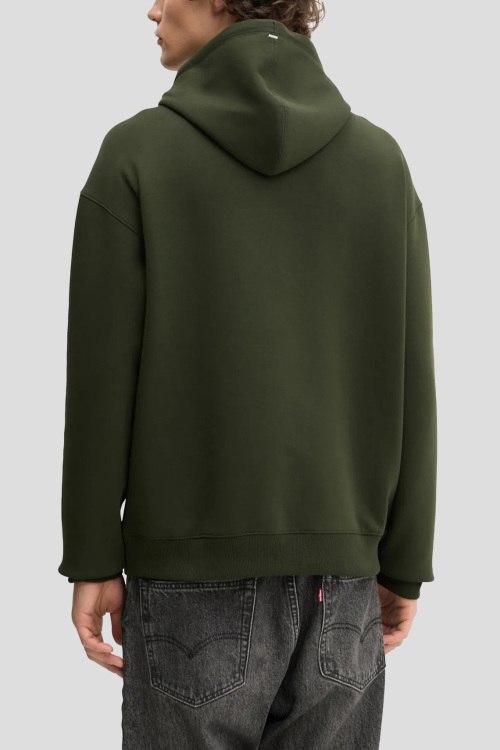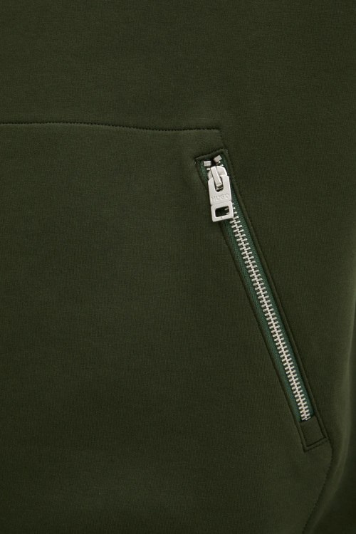 Детали: Мужской темно-зеленый хлопковый худи от Hugo by Hugo Boss (Хуго бай Хуго Босс). Капюшон на завязках, логотип на груди, карман-кенгуру на молнии, классическая длина, трикотажные манжеты и нижний край