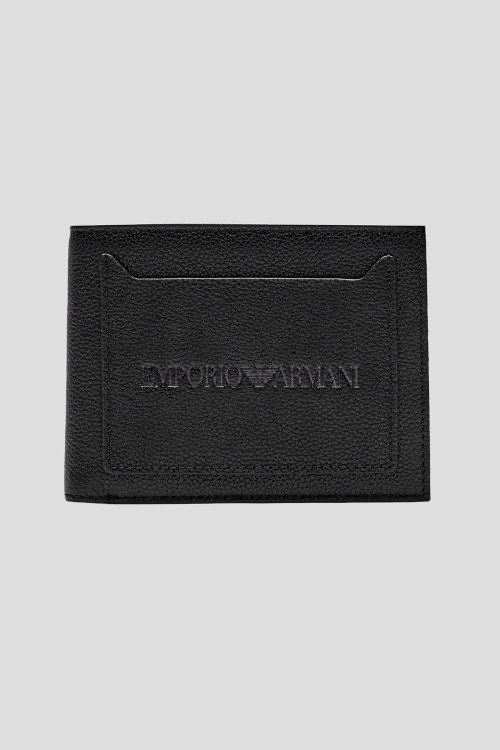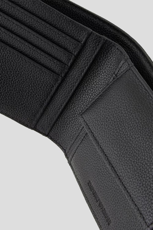 Детали: Мужской черный кожаный кошелек от Emporio Armani (Эмпорио Армани). Модель из зернистой кожи, значок с логотипом, без застежки, внутренние отделения для купюр, монет и кредитных карт. Размеры: 12 x 9.5 x 2.5 см