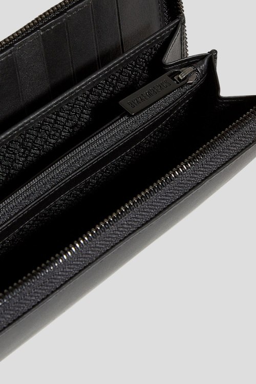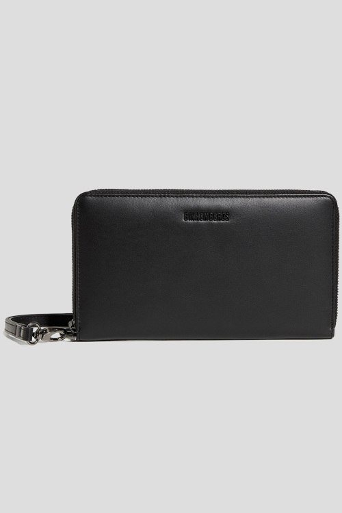 Детали: Мужской черный кожаный кошелек от Bikkembergs (Биккембергс). Модель из гладкой кожи, значок с логотипом, застежка-молния, внутренние отделения для купюр, монет и карт, ремешок на запястье. Размеры: 12 x 21 x 2 см