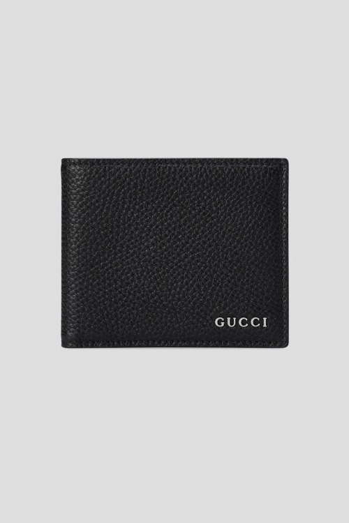 Детали: Мужской черный кожаный кошелек от Gucci (Гуччи). Модель из зернистой кожи, металлический значок с логотипом, восемь прорезей для пластиковых карт и два отделения для банкнот. Размеры: 11 х 9 см