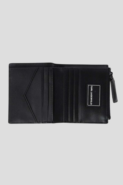 Детали: Мужской черный кошелек из экокожи K/Ikonik от Karl Lagerfeld (Карл Лагерфельд). Модель из гладкой кожи, нашивка K/Ikonik, одно отделение на молнии, внутренние отделения для купюр и кредитных карт, фирменная коробка. Размер: 9,5X11X1,5 см