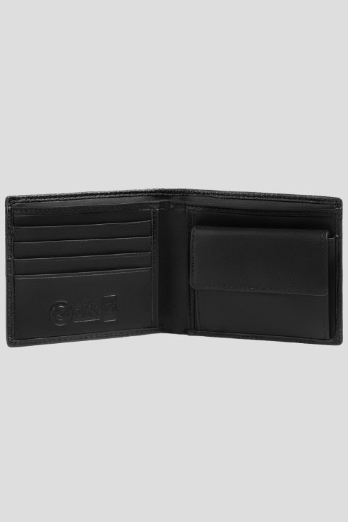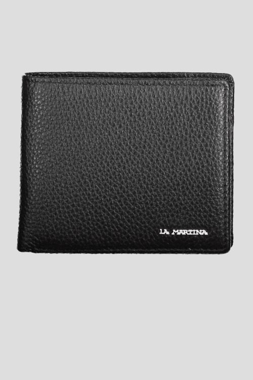 Детали: Мужской черный кожаный кошелек от La Martina (Ла Мартина). Модель из зернистой кожи, значок с логотипом, без застежки, внутренние отделения для купюр, монет и кредитных карт. Размер: 11 x 9,5 x 2 см