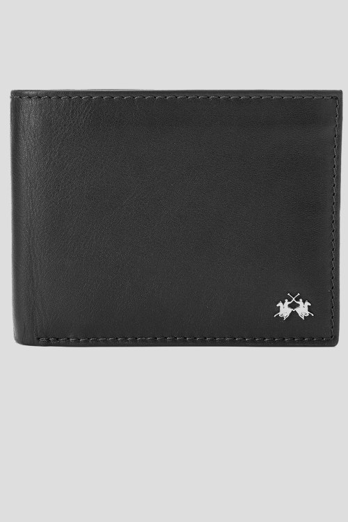 Детали: Мужской черный кожаный кошелек от La Martina (Ла Мартина). Модель из гладкой кожи, внутренние отделения для купюр, монет и карт. Размеры: 9,5 × 12 см