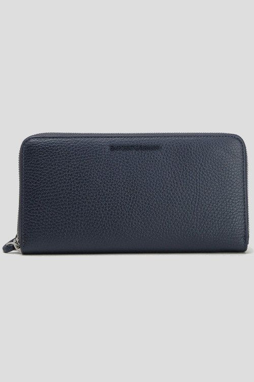 Детали: Мужской темно-синий кошелек из натуральной кожи от Emporio Armani (Эмпорио Армани). Прямоугольная форма, застежка на молнию, отделения для кредитных карт, карман на молнии, слоты для документов, логотип бренда