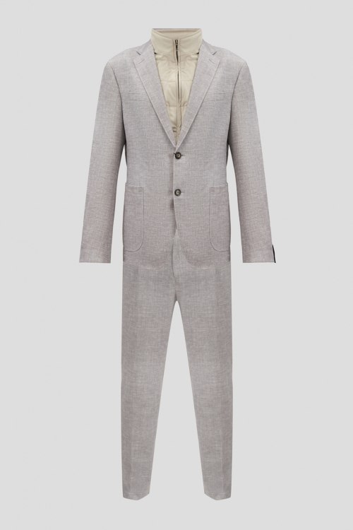 Детали: Мужской серый костюм из хлопка от Joop! (Йооп!). Блейзер со съемным бортом-воротником на молнии, отложной воротник с лацканами, застежка на две пуговицы, фигурный низ, два накладных кармана, манжеты на пуговицах. Зауженные к низу брюки, застежка на пуговицу и молнию, два боковых кармана, два кармана на пуговицах сзади. Замеры: длина рукава: длинный, для размера 50 - 61 см, обхват груди: для размера 50 - 108 см, обхват талии: для размера 50 - 94 см, длина изделия по среднему шву спинки от горловины: для размера 50 - 71 см. Брюки: обхват пояса: для размера 50 - 80 см, обхват бедер: для размера 50 - 100 см, длина штанины: для размера 50 - 100 см, длина по шаговому шву: для размера 50 - 73 см