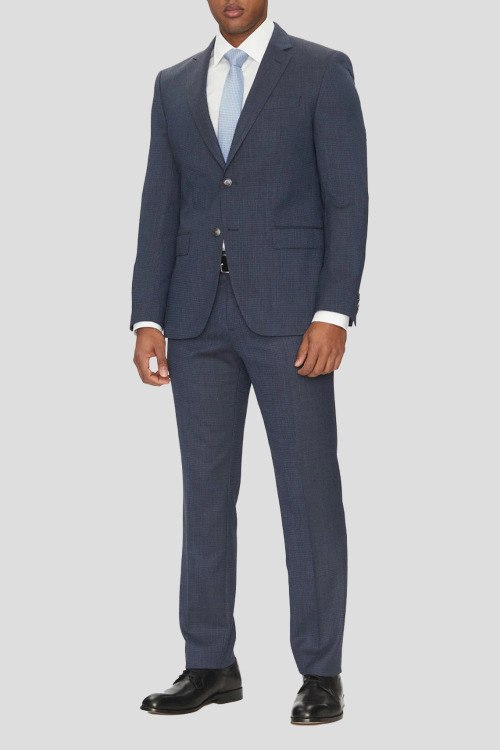 Детали: Мужской темно-синий классический костюм H-Huge из полиэстера и шерсти от Hugo Boss (Хуго Босс). Пиджак на пуговицах, отложной воротник, карманы с клапаном, классические брюки, застежка на пуговицу и молнию, прорезные карманы