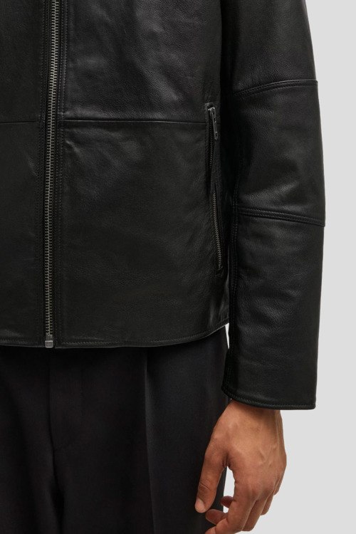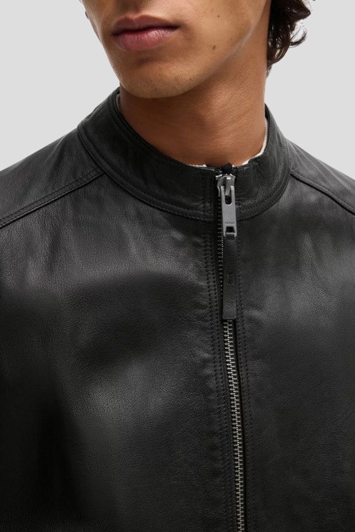 Мужская черная куртка Lokis-3 из натуральной кожи от Hugo by Hugo Boss (Хуго бай Хуго Босс). Классическая длина, застежка на молнию, прорезные карманы на молнии