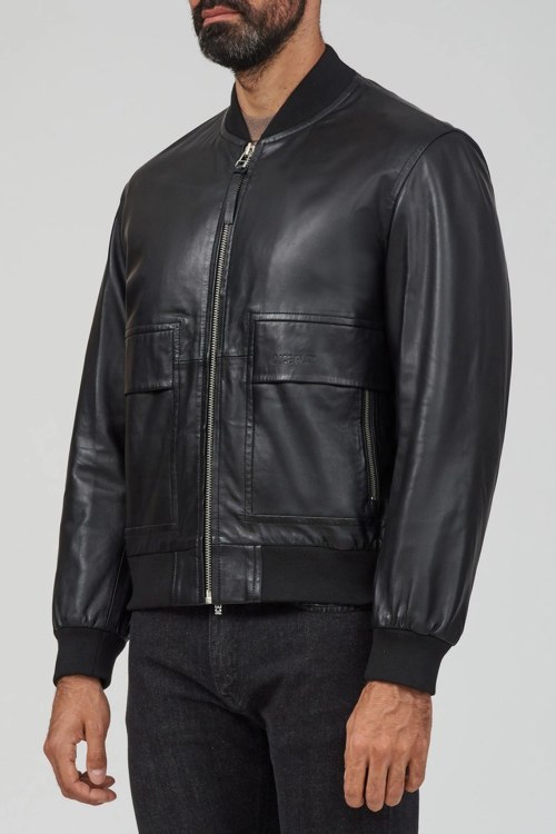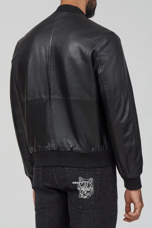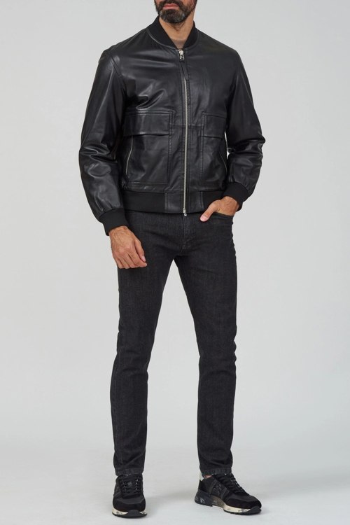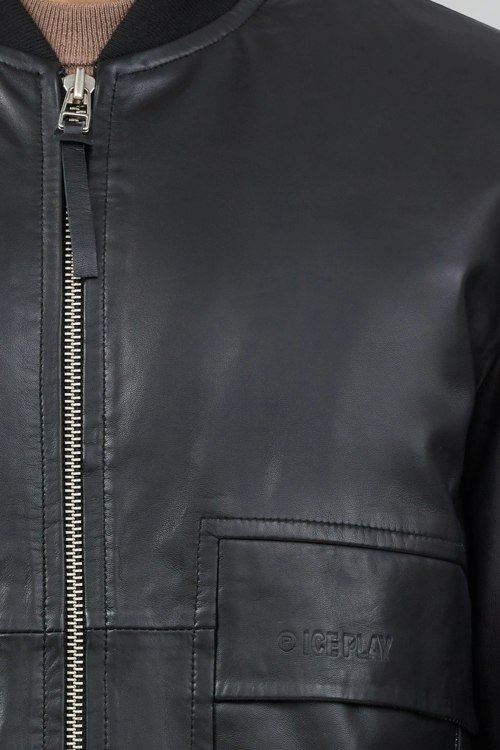 Детали: Мужской черный кожаный бомбер от Ice Play (Айс Плей). Модель из гладкой кожи, воротник-стойка, карманы на молнии, застежка-молния, классическая длина, трикотажные манжеты и нижний край