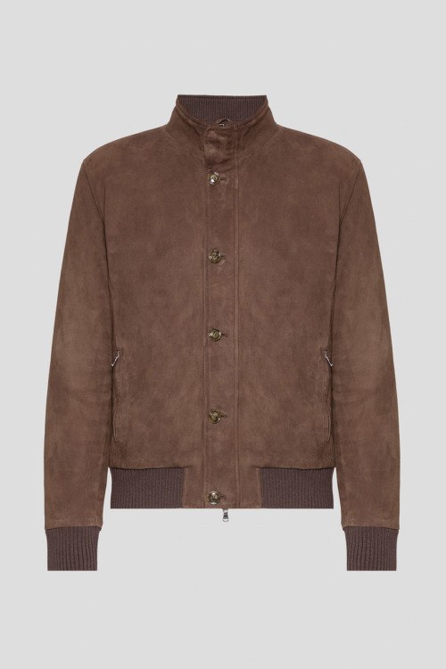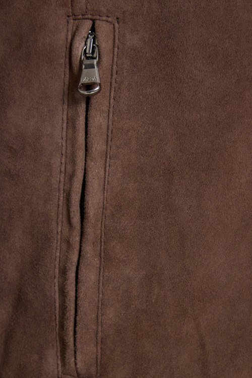 Детали: Мужская коричневая куртка из натуральной замши от Barba Napoli (Барба Наполи). Классическая длина, воротник-стойка, застежка спереди на пуговицы и молнию, два внешних кармана на молнии, два внутренних, эластичная резинка на манжетах, горловине и по низу изделия. Замеры: длина рукава: длинный, для размера 52 - 68 см, обхват груди: для размера 52 - 120 см, обхват талии: для размера 52 - 114 см, длина изделия по среднему шву спинк