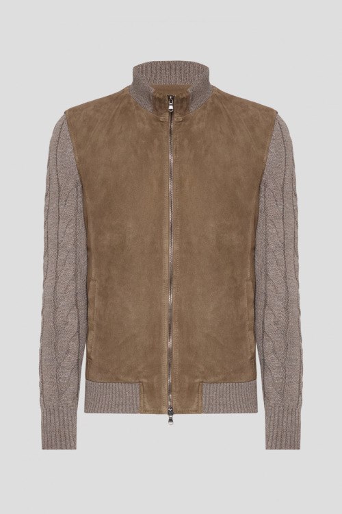 Детали: Мужская коричневая куртка из натуральной замши от Barba Napoli (Барба Наполи). Прямой фасон, классическая длина, застежка на молнию спереди, воротник-стойка, два внешних кармана, два внутренних, вязаные рукава с узором. Замеры: длина рукава: длинный, для размера 50 - 67 см, обхват груди: для размера 50 - 106 см, обхват талии: для размера 50 - 100 см, длина изделия по среднему шву спинки от горловины: для размера 50 - 67 см
