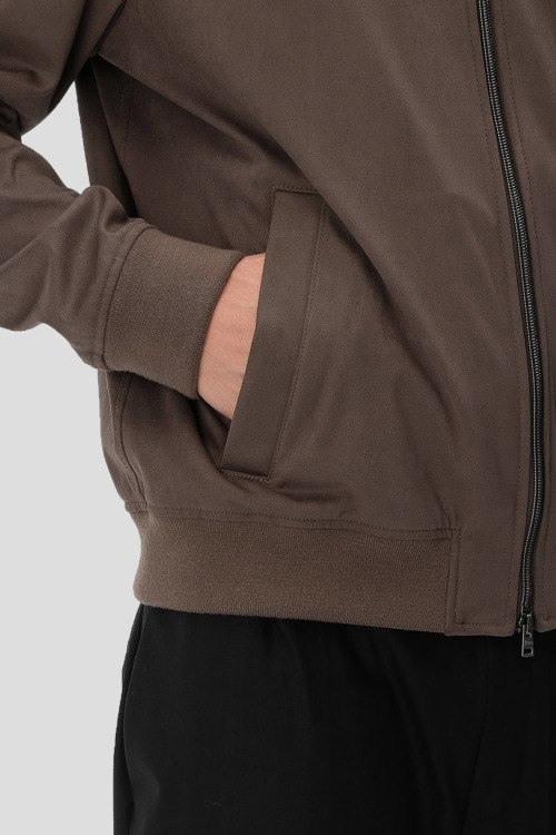 Детали: Мужской коричневый бомбер из экозамши от Herno (Эрно). Воротник-стойка, боковые карманы, застежка-молния, классическая длина, трикотажные манжеты и нижний край