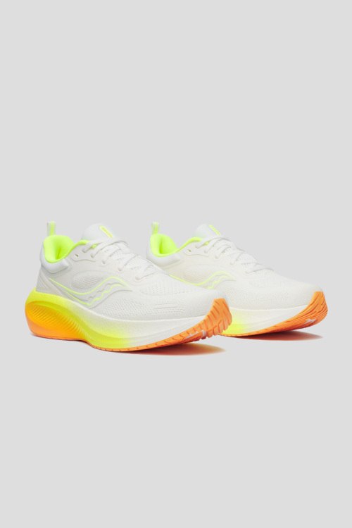 Детали: Мужские белые текстильные кроссовки Surge 3 для бега от Saucony (Сайкони). Закругленный носок, спереди классическая шнуровка, брендированные вставки, резиновая оливковая подошва, патч-лого, петля для подтягивания