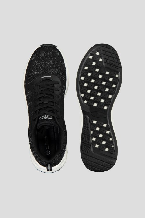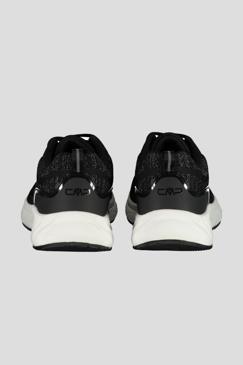 Детали: Мужские черные кроссовки из полиэстера и полиуретана от CMP (СМП). Миндалевидный носок, спереди классическая шнуровка, модель с перфорацией, петли для подтигивания, дизайн в виде комбинации цветов и материалов, рельефная подошва