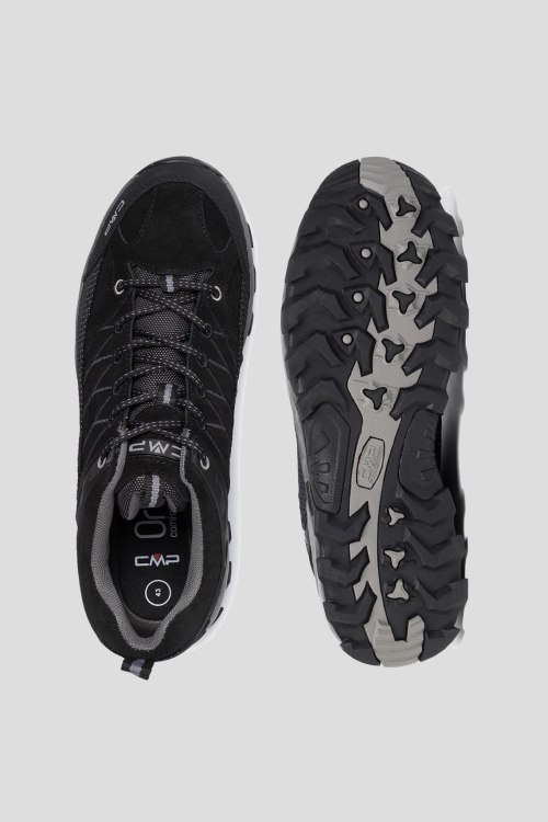 Детали: Мужские черные кроссовки из натуральной кожи и полиэстера от CMP (СМП). Миндлевидный носок, спереди классическая шнуровка, петли для подтягивания, технология WATERPROOF, дизайн в виде комбинации цветов и материалов, рельефная подошва
