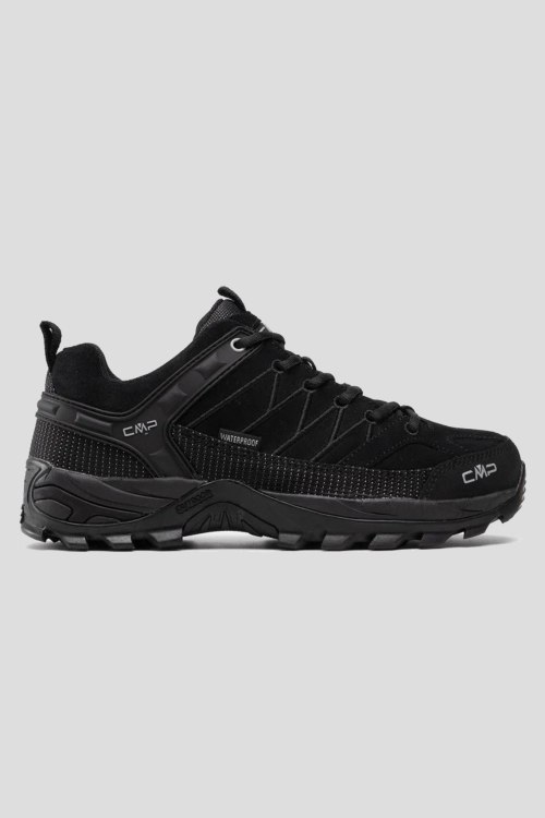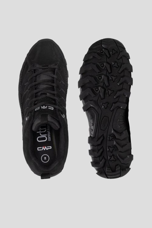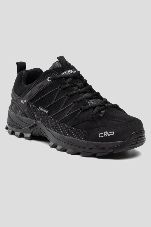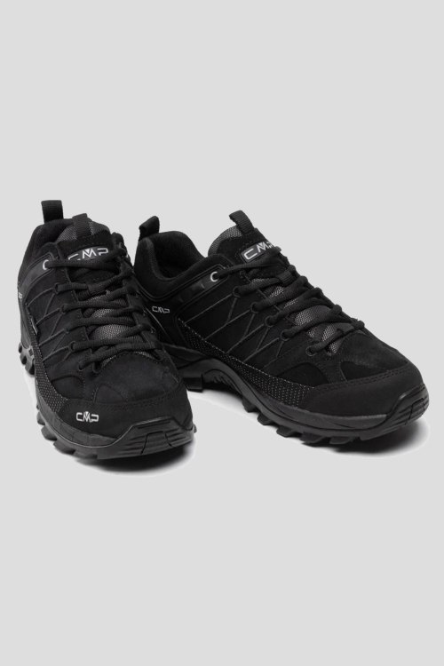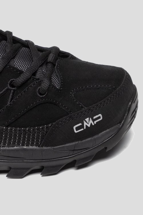 Мужские черные кроссовки из кожи и замша от CMP (СМП). Закругленный носок, спереди классическая шнуровка, петля для подтягивания, тракторная подошва, фирменный логотип