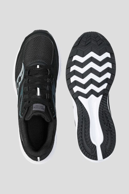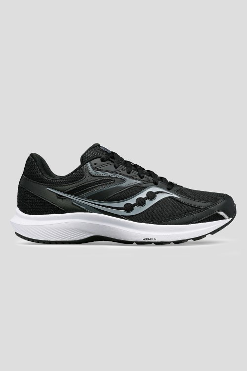 Детали: Мужские черные кроссовки для бега Cohesion 17 от Saucony (Сайкони). Амортизация VERSARUN поглощает удары и обеспечивает комфорт при каждом шаге, резиновая подошва выдерживающая много миль, легкий и дышащий верх