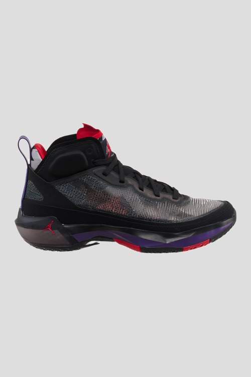 Мужские черные хайтопы для баскетбола Air Jordan XXXVII от Air Jordan (Эир Джордан). Прочный и легкий верх, разработанный для обеспечения поддержки, двойные воздушные блоки в передней части стопы обеспечивают чувствительность и отдачу энергии, фирменная пена Jordan