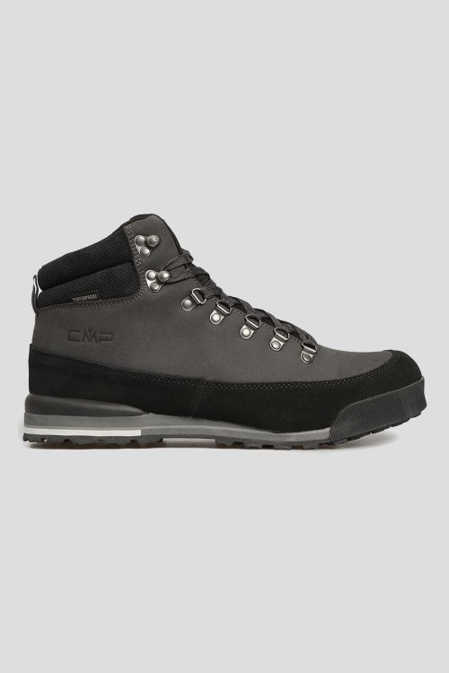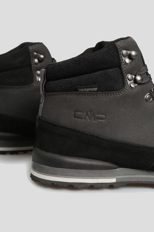 Мужские серые ботинки из натуральной кожи от от CMP (СМП). Модель Heka Hiking Shoes Wp. Комбинированный дизайн, спереди шнуровка, тонкая подошва, закругленный носок, петля для подтягивания, фирменный логотип бренда