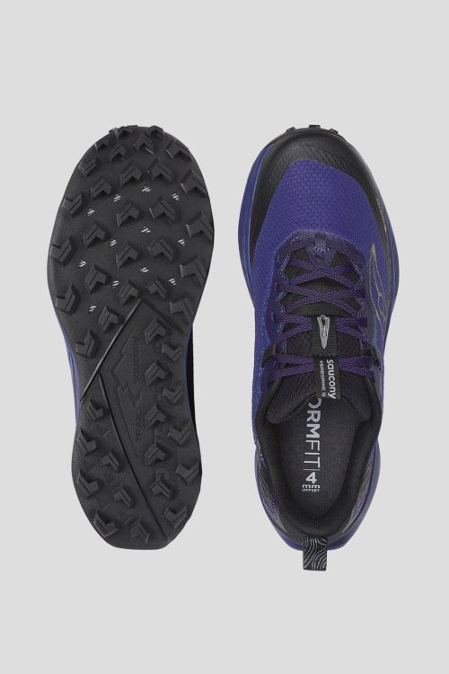 Детали: Мужские темно-синие беговые кроссовки Peregrine 15 GTX от Saucony (Сайкони). Комбинация цветов и материалов, закругленный носок, спереди классическая шнуровка, петли для подтягивания, резиновая подошва