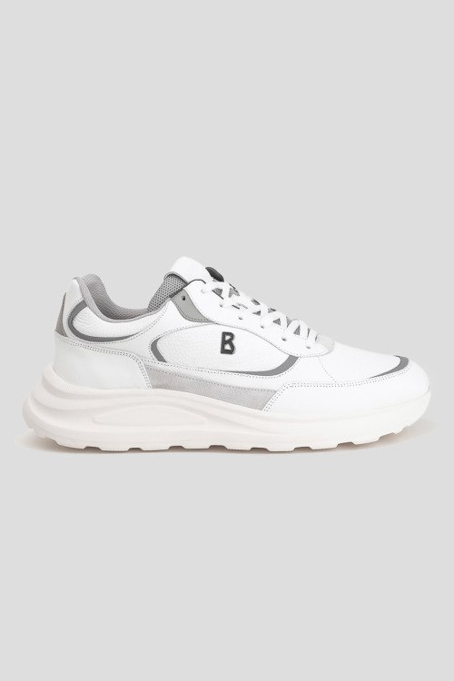 Детали: Мужские белые кроссовки Bilbao из натуральной кожи от Bogner (Богнер). Закругленный носок, спереди классическая шнуровка, логотип бренда, контрастные вставки, патч-лого, рельефная подошва