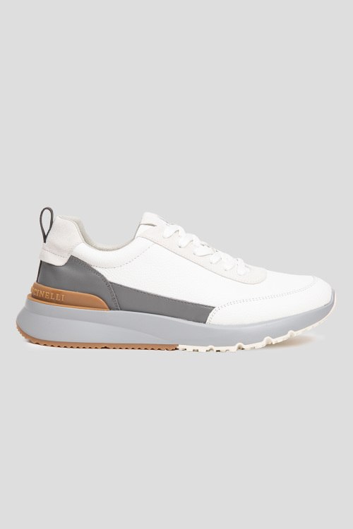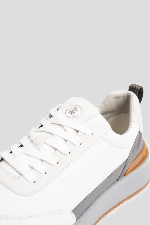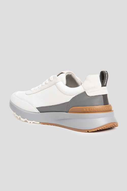 Детали: Мужские белые кожаные кроссовки от Brunello Cucinelli (Брунелло Кучинелли). Модель из зернистой кожи, логотип на язычке и на пятке, классическая шнуровка, петля для подтягивания сзади, закругленный носок. Обувь категории outlet, коробка может быть повреждена