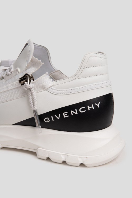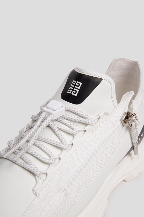 Детали: Мужские белые кожаные кроссовки от Givenchy (Живанши). Модель из гладкой кожи, логотип сбоку и на язычке, шнуровка на затяжке, застежка-молния сбоку, закругленный носок. Обувь категории outlet, коробка может быть повреждена