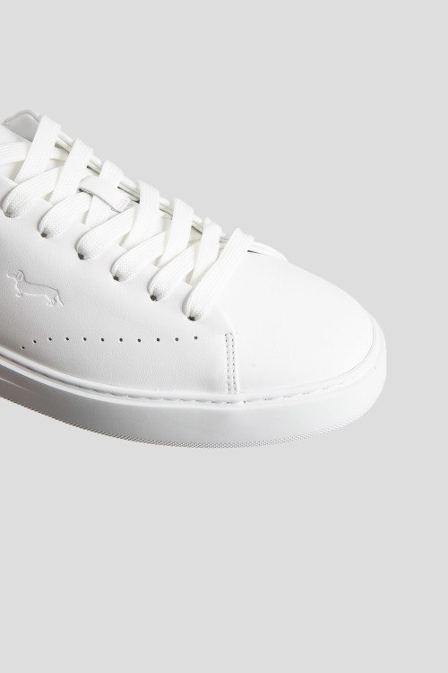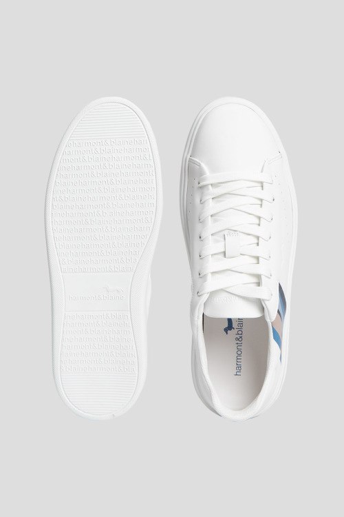 Детали: Мужские белые кеды из натуральной кожи от Harmont & Blaine (Хармонт энд Блейн). Закругленный носок, контрастные вставки сбоку, спереди классическая шнуровка, белая резиновая подошва, логотип бренда