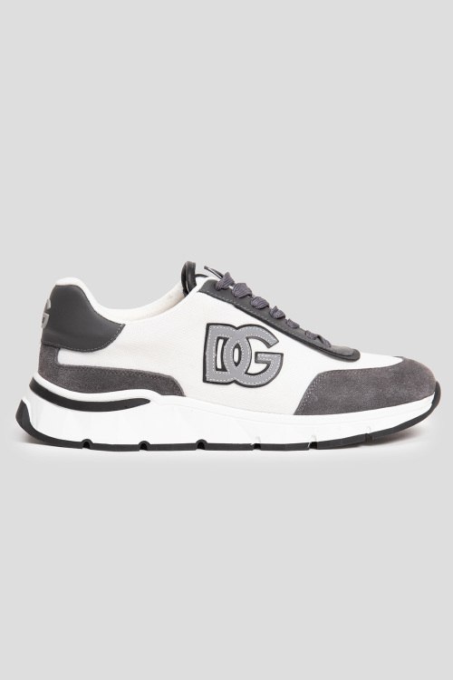 Детали: Мужские бело-серые кроссовки из текстиля и замши от Dolce & Gabbana (Дольче энд Габбана). Комбинация цветов и материалов, логотип сбоку, на язычке и на пятке, классическая шнуровка, закругленный носок. Обувь категории outlet, коробка может быть повреждена